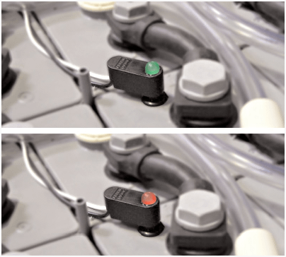 - Покращує технічне обслуговування батареї, візуально попереджаючи операторів про необхідність долити воду.