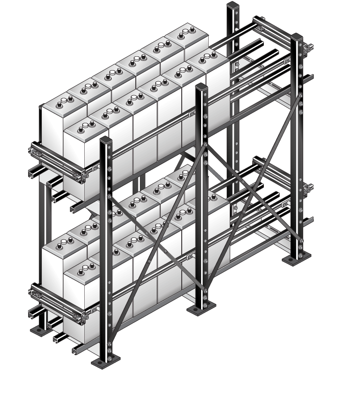 Стелажі “Alpha-Passoni” в сейсмостійкому виконанні для розміщення стаціонарних акумуляторних батарей мають модульну конструкцію, яка базується на застосуванні стандартних елементів і спеціальних додаткових комплектуючих, які забезпечують жорстке кріплення акумуляторів у сейсмонебезпечних зонах, включаючи об’єкти атомної енергетики.