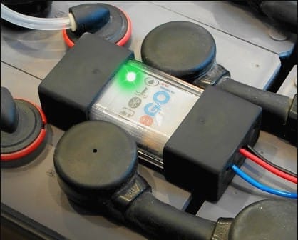 - Постійний контроль за циклами, можливістю зарядки, напругою, рівнем електроліту та температурою акумуляторної батареї завдяки встановленню системи безпосередньо на батарею.