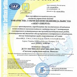 - Впроваджена та досягнена відповідність вимогам системи управління якістю – ДСТУ ISO 9001: 2015 (ISO 9001:2015, IDC) «Системи управління якістю. Вимоги».